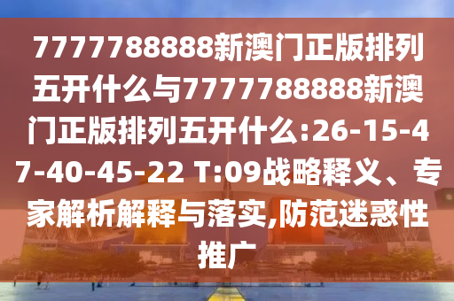 7777788888新澳門正版排列五開什么與7777788888新澳門正版排列五開什么:26-15-47-40-45-22 T:09戰(zhàn)略釋義、專家解析解釋與落實,防范迷惑性推廣