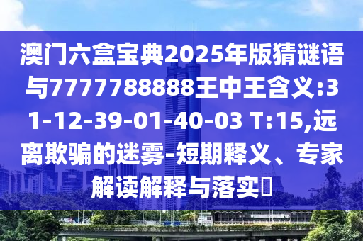 澳門六盒寶典2025年版猜謎語與7777788888王中王含義:31-12-39-01-40-03 T:15,遠離欺騙的迷霧-短期釋義、專家解讀解釋與落實?