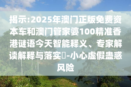 關(guān)于揭示“澳門正版免費(fèi)資本車”、“澳門管家婆精準(zhǔn)香港謎語”等關(guān)鍵詞的智能釋義、專家解讀與落實(shí),以及警惕虛假宣傳的風(fēng)險(xiǎn)