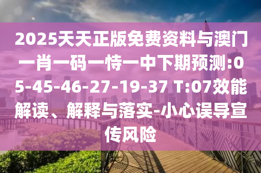2025天天正版免費(fèi)資料與澳門一肖一碼一恃一中下期預(yù)測(cè):05-45-46-27-19-37 T:07效能解讀、解釋與落實(shí)-小心誤導(dǎo)宣傳風(fēng)險(xiǎn)