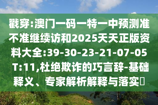 戳穿:澳門(mén)一碼一特一中預(yù)測(cè)準(zhǔn)不準(zhǔn)繼續(xù)訪和2025天天正版資料大全:39-30-23-21-07-05 T:11,杜絕欺詐的巧言辭-基礎(chǔ)釋義、專(zhuān)家解析解釋與落實(shí)?
