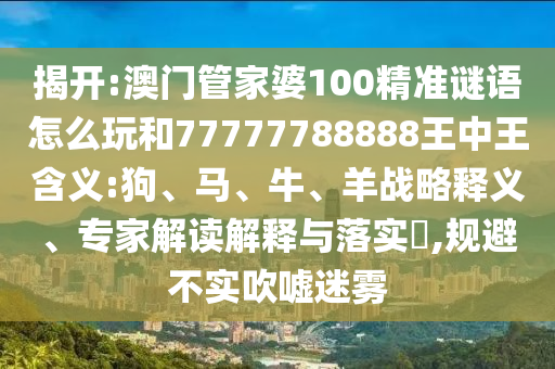 揭開(kāi):澳門(mén)管家婆100精準(zhǔn)謎語(yǔ)怎么玩和77777788888王中王含義:狗、馬、牛、羊戰(zhàn)略釋義、專(zhuān)家解讀解釋與落實(shí)?,規(guī)避不實(shí)吹噓迷霧