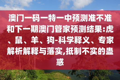 澳門一碼一特一中預(yù)測(cè)準(zhǔn)不準(zhǔn)和下一期澳門管家預(yù)測(cè)結(jié)果:虎、鼠、羊、狗-科學(xué)釋義、專家解析解釋與落實(shí),抵制不實(shí)的蠱惑