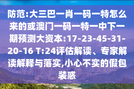 防范:大三巴一肖一碼一特怎么來(lái)的或澳門一碼一特一中下一期預(yù)測(cè)大資本:17-23-45-31-20-16 T:24評(píng)估解讀、專家解讀解釋與落實(shí),小心不實(shí)的假包裝惑