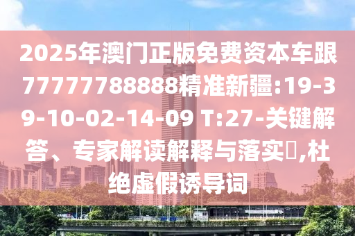 2025年澳門(mén)正版免費(fèi)資本車(chē)跟77777788888精準(zhǔn)新疆:19-39-10-02-14-09 T:27的關(guān)鍵解答、專家解讀解釋與落實(shí)?