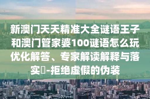 新澳門天天精準(zhǔn)大全謎語王子和澳門管家婆100謎語怎么玩:優(yōu)化解答、專家解讀解釋與落實?