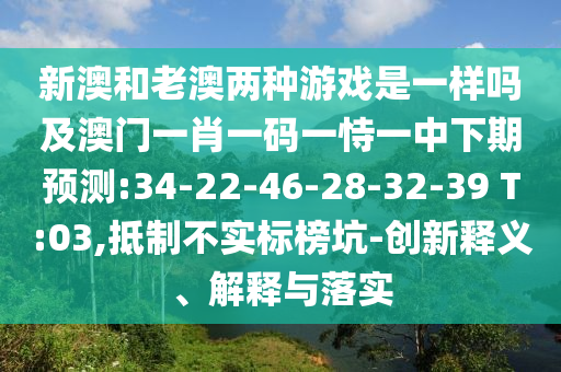 新澳和老澳兩種游戲是一樣嗎及澳門一肖一碼一恃一中下期預(yù)測(cè):34-22-46-28-32-39 T:03,抵制不實(shí)標(biāo)榜坑-創(chuàng)新釋義、解釋與落實(shí)