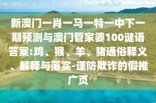 關(guān)于新澳門一肖一馬一特一中下一期預(yù)測與澳門管家婆100謎語答案:雞、猴、羊、豬等相關(guān)內(nèi)容的通俗釋義、解釋與落實,以及謹(jǐn)防欺詐的假推廣頁的警告