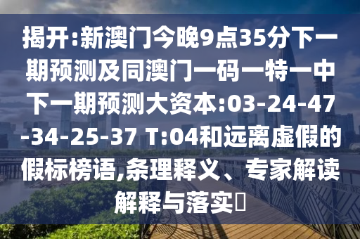 關(guān)于揭開新澳門今晚9點35分下一期預(yù)測及同澳門一碼一特一中下一期預(yù)測大資本等相關(guān)問題的條理釋義、專家解讀與落實,以及警惕虛假的假標(biāo)榜語的解析