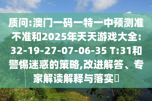 質(zhì)問:澳門一碼一特一中預(yù)測準不準和2025年天天游戲大全:32-19-27-07-06-35 T:31和警惕迷惑的策略,改進解答、專家解讀解釋與落實?
