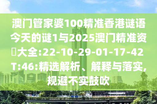 澳門管家婆100精準(zhǔn)香港謎語今天的謎1與2025澳門精準(zhǔn)資枓大全:22-10-29-01-17-42 T:46:精選解析、解釋與落實(shí),規(guī)避不實(shí)鼓吹