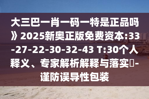 大三巴一肖一碼一特是正品嗎》2025新奧正版免費(fèi)資本:33-27-22-30-32-43 T:30個(gè)人釋義、專家解析解釋與落實(shí)?-謹(jǐn)防誤導(dǎo)性包裝