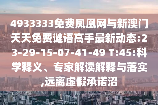 4933333免費(fèi)鳳凰網(wǎng)與新澳門天天免費(fèi)謎語(yǔ)高手最新動(dòng)態(tài):23-29-15-07-41-49 T:45:科學(xué)釋義、專家解讀解釋與落實(shí),遠(yuǎn)離虛假承諾沼