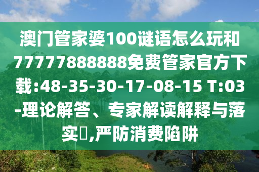 澳門管家婆100謎語怎么玩和77777888888免費管家官方下載:48-35-30-17-08-15 T:03-理論解答、專家解讀解釋與落實?,嚴防消費陷阱