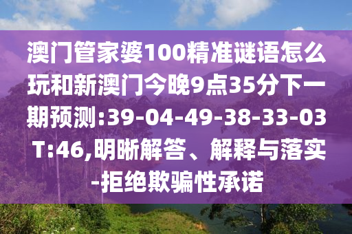 澳門管家婆100精準(zhǔn)謎語(yǔ)怎么玩和新澳門今晚9點(diǎn)35分下一期預(yù)測(cè):39-04-49-38-33-03 T:46,明晰解答、解釋與落實(shí)-拒絕欺騙性承諾