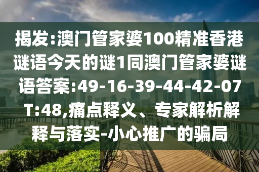 揭發(fā)澳門管家婆精準(zhǔn)答案”與“小心推廣騙局”的解析