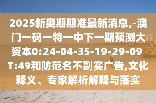 2025新奧期期準(zhǔn)最新消息,-澳門一碼一特一中下一期預(yù)測大資本0:24-04-35-19-29-09 T:49和防范名不副實廣告,文化釋義、專家解析解釋與落實