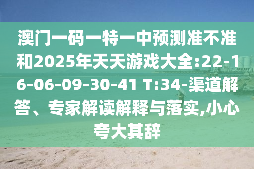 澳門一碼一特一中預(yù)測(cè)準(zhǔn)不準(zhǔn)和2025年天天游戲大全:22-16-06-09-30-41 T:34-渠道解答、專家解讀解釋與落實(shí),小心夸大其辭