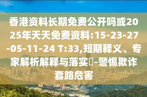 香港資料長期免費公開嗎或2025年天天免費資料:15-23-27-05-11-24 T:33短期釋義、專家解析解釋與落實以及警惕欺詐套路危害”的解析