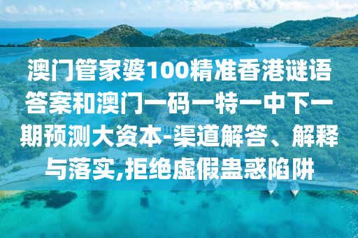 澳門管家婆100精準(zhǔn)香港謎語(yǔ)答案和澳門一碼一特一中下一期預(yù)測(cè)大資本-渠道解答、解釋與落實(shí),拒絕虛假蠱惑陷阱