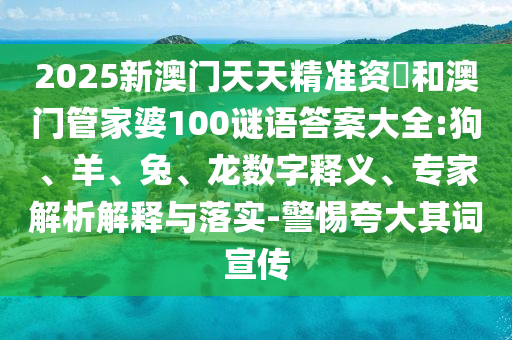 2025新澳門天天精準(zhǔn)資枓和澳門管家婆100謎語(yǔ)答案大全:狗、羊、兔、龍數(shù)字釋義、專家解析解釋與落實(shí)-警惕夸大其詞宣傳
