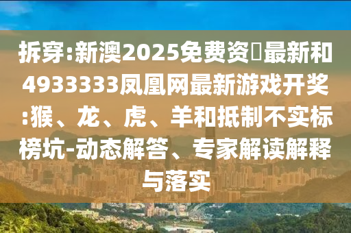 新澳2025免費資枓最新和4933333鳳凰網(wǎng)最新游戲開獎:猴、龍、虎、羊:動態(tài)解答、專家解讀解釋與落實